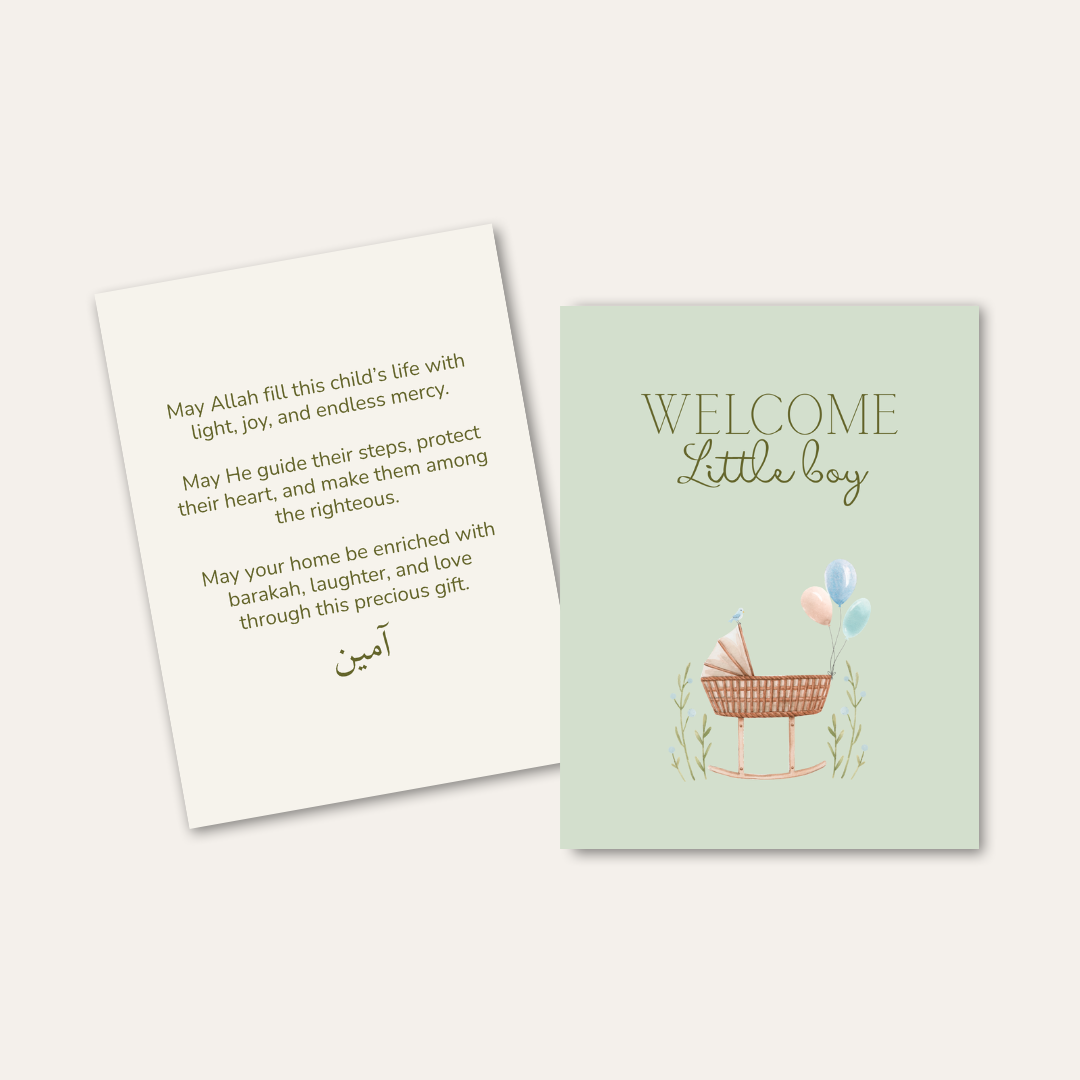 The card carries a heartfelt, pre-written blessing, making it perfect for gifting without needing to find the right words. Thoughtfully designed for meaningful moments, from birth celebrations to aqiqah gifts.
